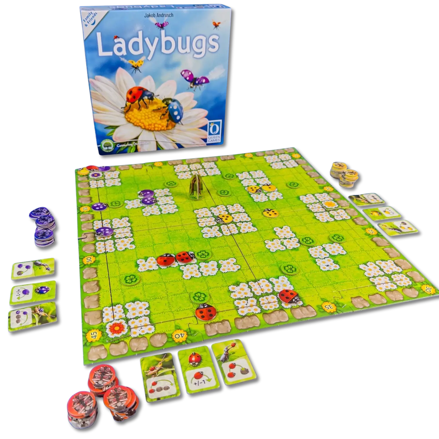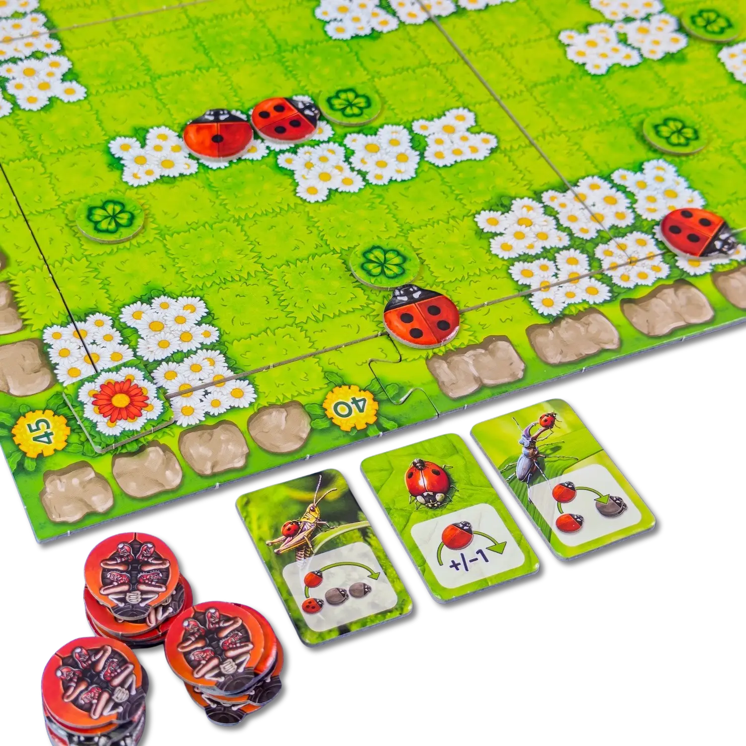 In Ladybugs nimmst du an einem bunten Wettbewerb um die schönsten Blumenbeete 🐞🌸 teil. Strategisch platzierst du deine Käferplättchen, um Mehrheiten zu erzielen und deine Mitspieler*innen zu blockieren. Das Spiel kombiniert einfache Regeln mit überraschend tiefen taktischen Entscheidungen und bietet modulare Optionen wie Spezialaktionen und die Spinne, die deinen Spielstil erweitern. Dieser Mix aus Planung und präziser Platzierung macht Ladybugs zum idealen Spiel für Familienabende und strategische Freundeskreise 🧠🎲.